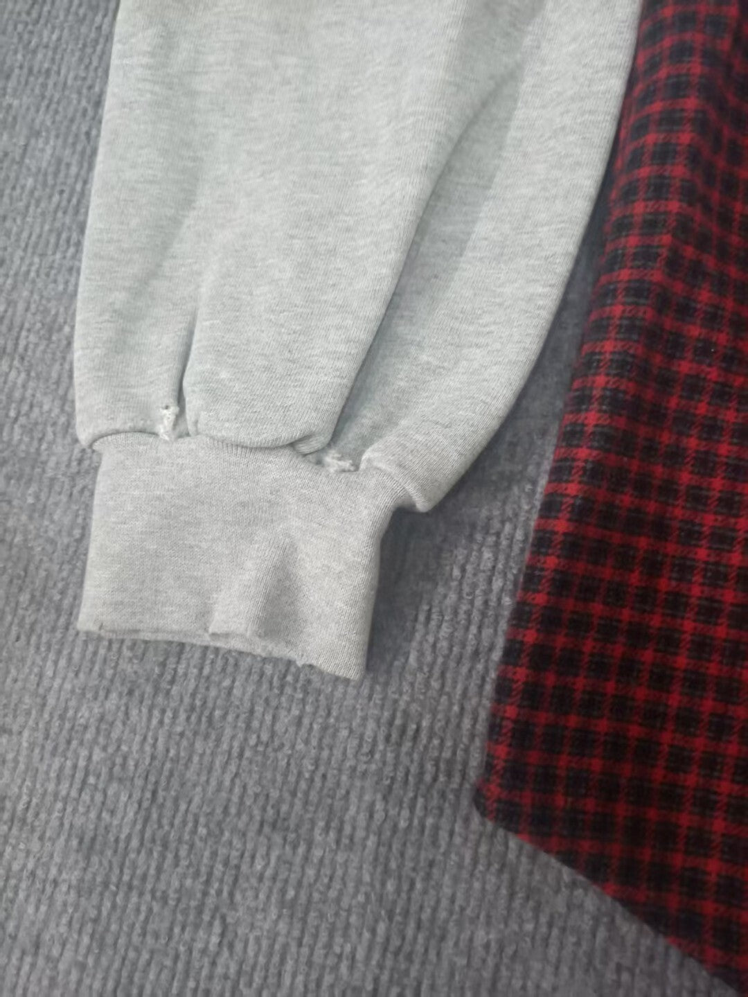 A modern shirt jacket designed with a contrast check panel body and soft hooded sleeves. The layered construction blends the structure of a shirt with the comfort of a hoodie.