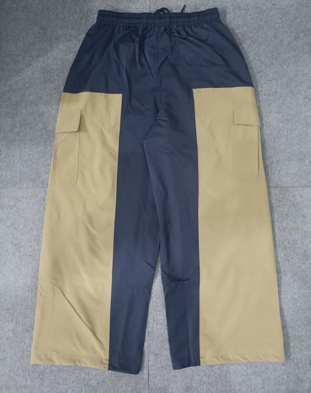 These utility cargo trousers are designed with a bold panelled construction and a relaxed, oversized fit. The contrasting fabric sections create a strong visual structure while keeping the silhouette modern and street-focused.