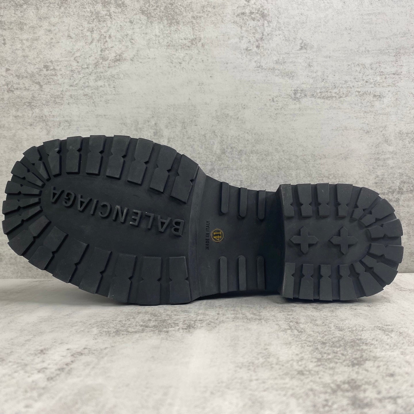 Compared with a classic derby, this pair feels much bolder because of its elevated profile and chunky lugged base. It works especially well with wide trousers, cropped tailoring, and monochrome outfits that let the proportions stand out.